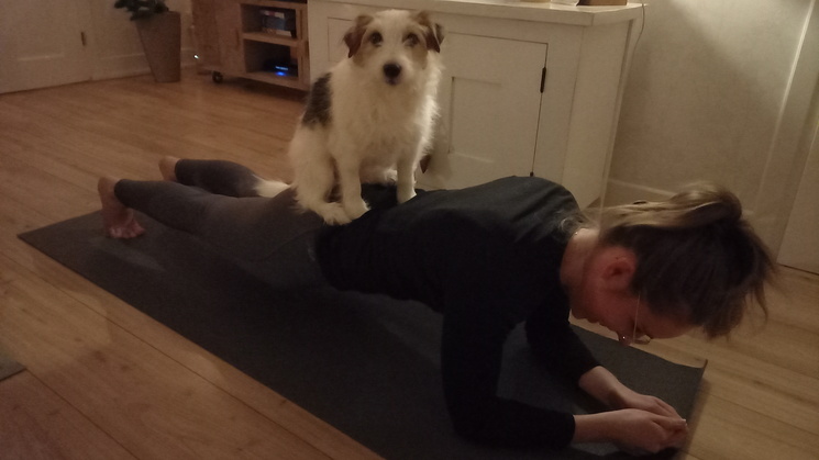 'S avonds toch nog maar toch even aan de buikspieren gewerkt... met extra hulp van Saartje natuurlijk! (zie foto). Want wie heeft gewichten nodig als je ook een Jack Russel hebt? :)